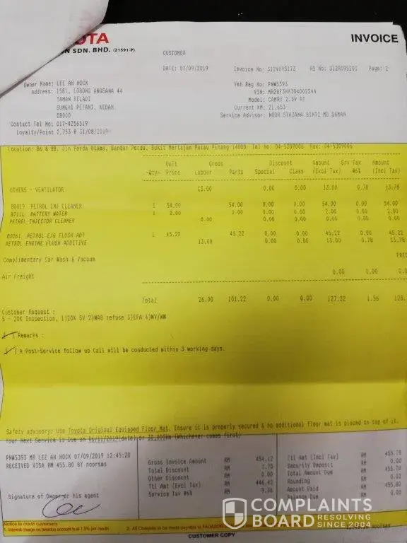 and now TOYOTA MALAYSIA claimed that i miss 2 times service in year 2014.
