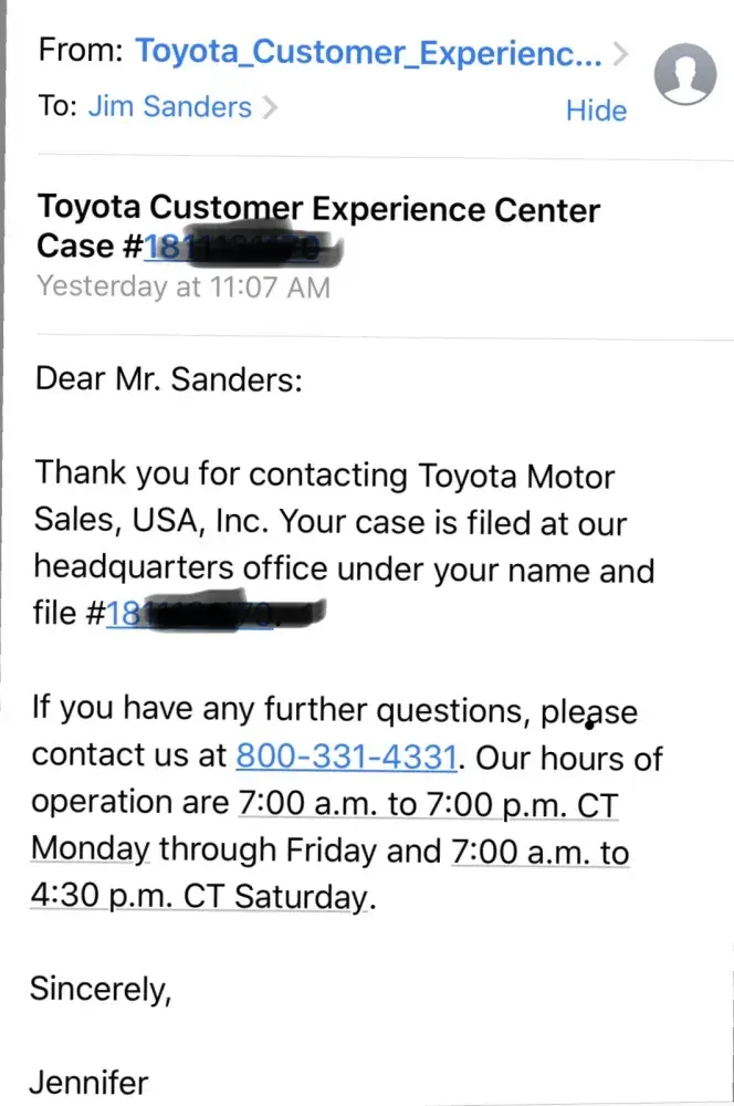 Toyota dont want to admit us their problem as refer to the picture