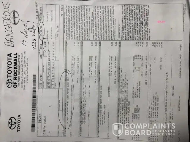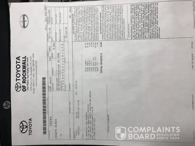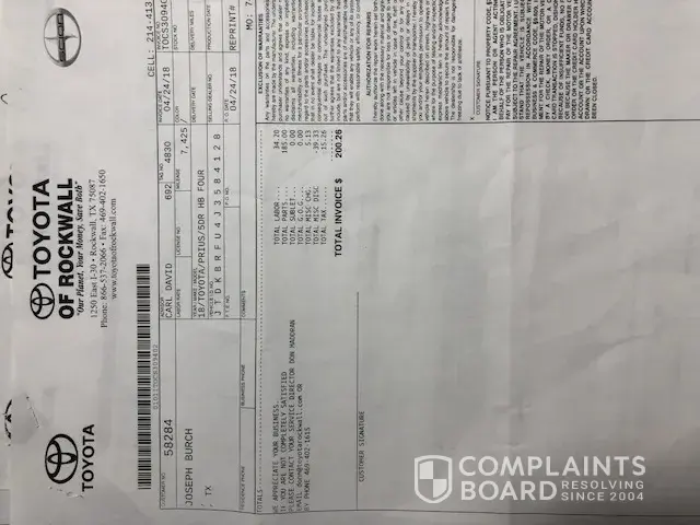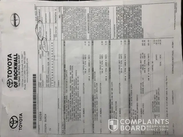 I was told by Toyota and it was also noted that I should call Corporate. I did make the call and the person told me she would call me after investigating. She called a few days later basically repeating what they told me at Johnstons Toyota.