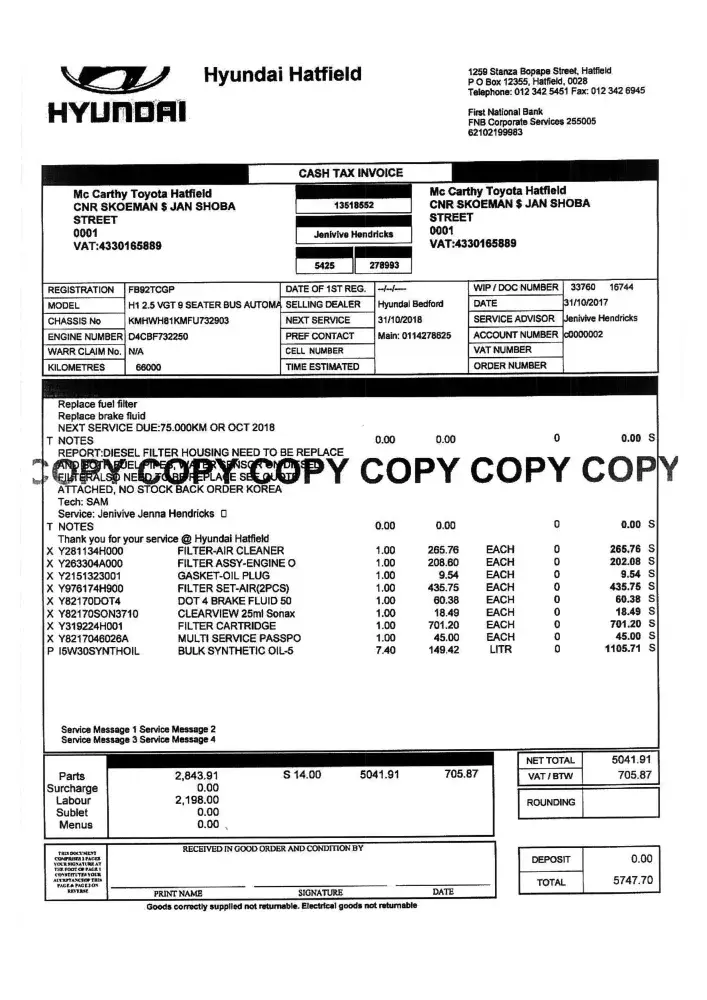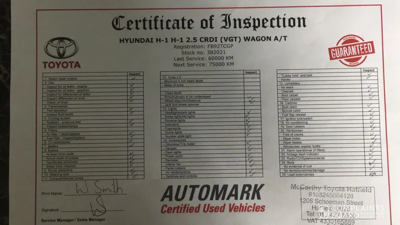 Attach is the notes the dealer recieved the faults that need to be done 31/10/2017