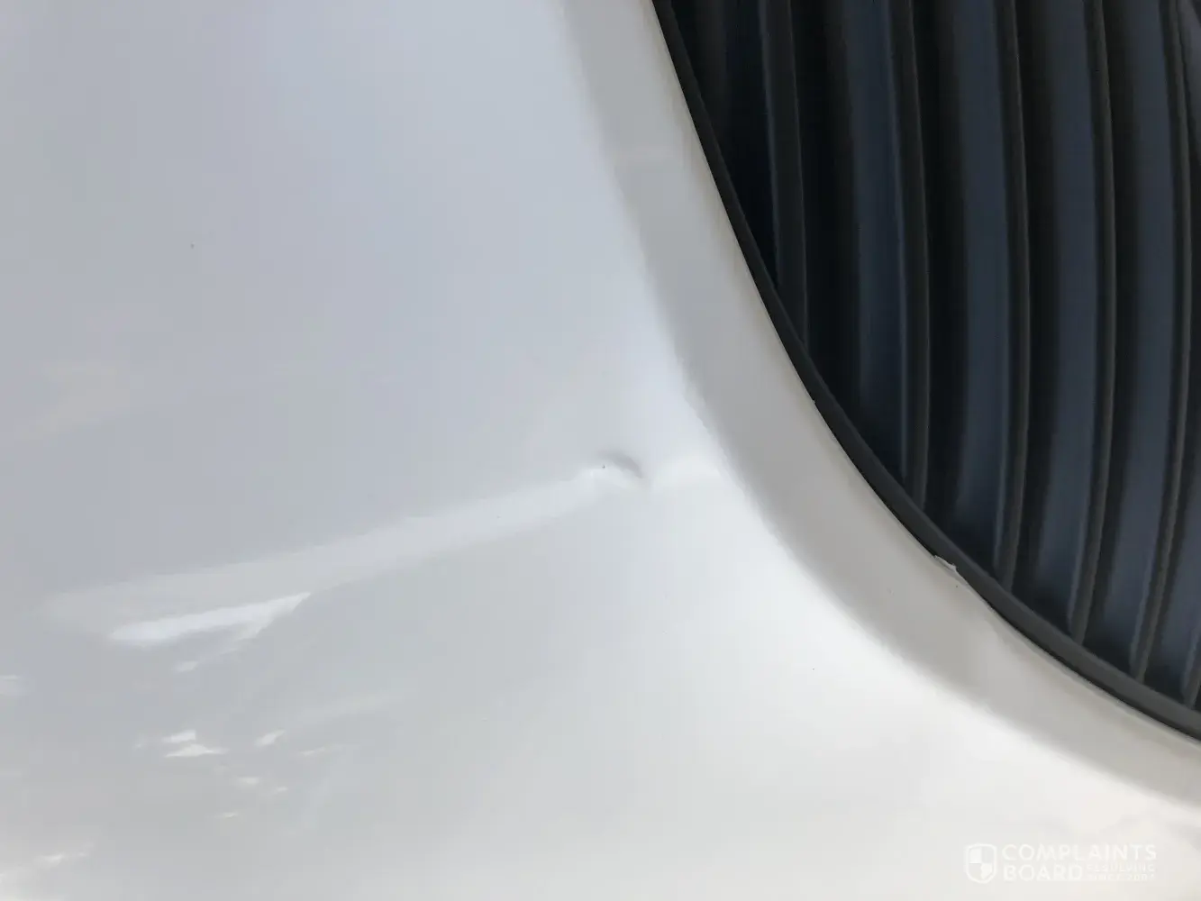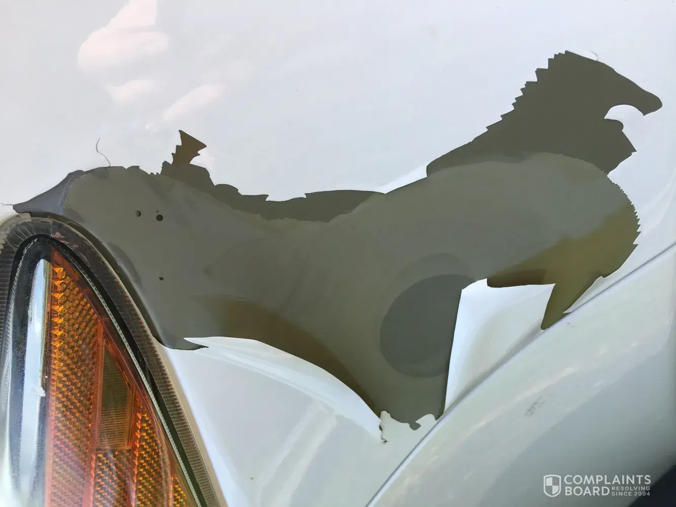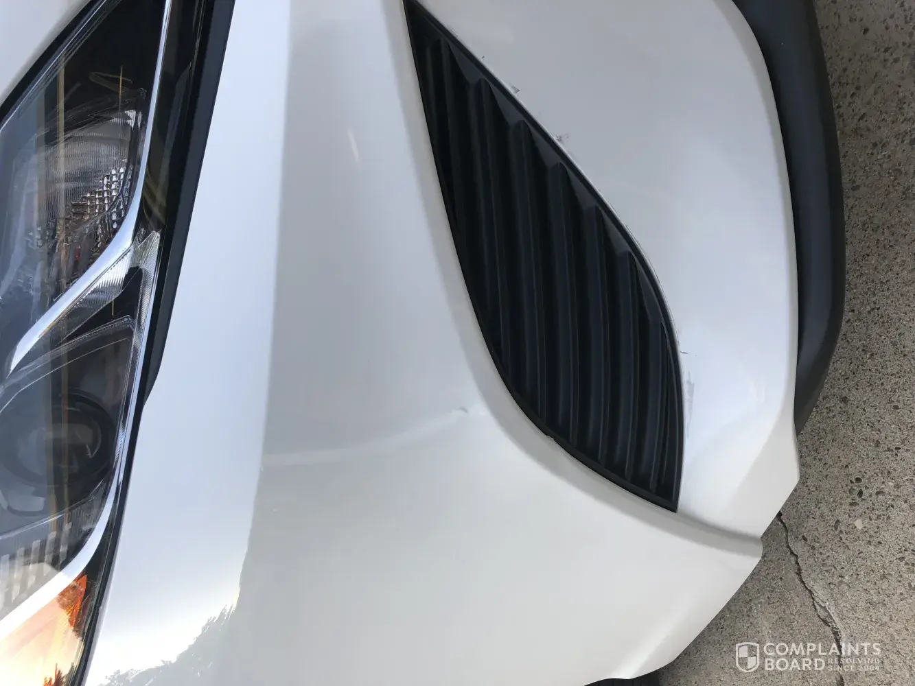 Pictures of the damage, head light beam, and missing paint from the bumper after they attempted to paint it.
