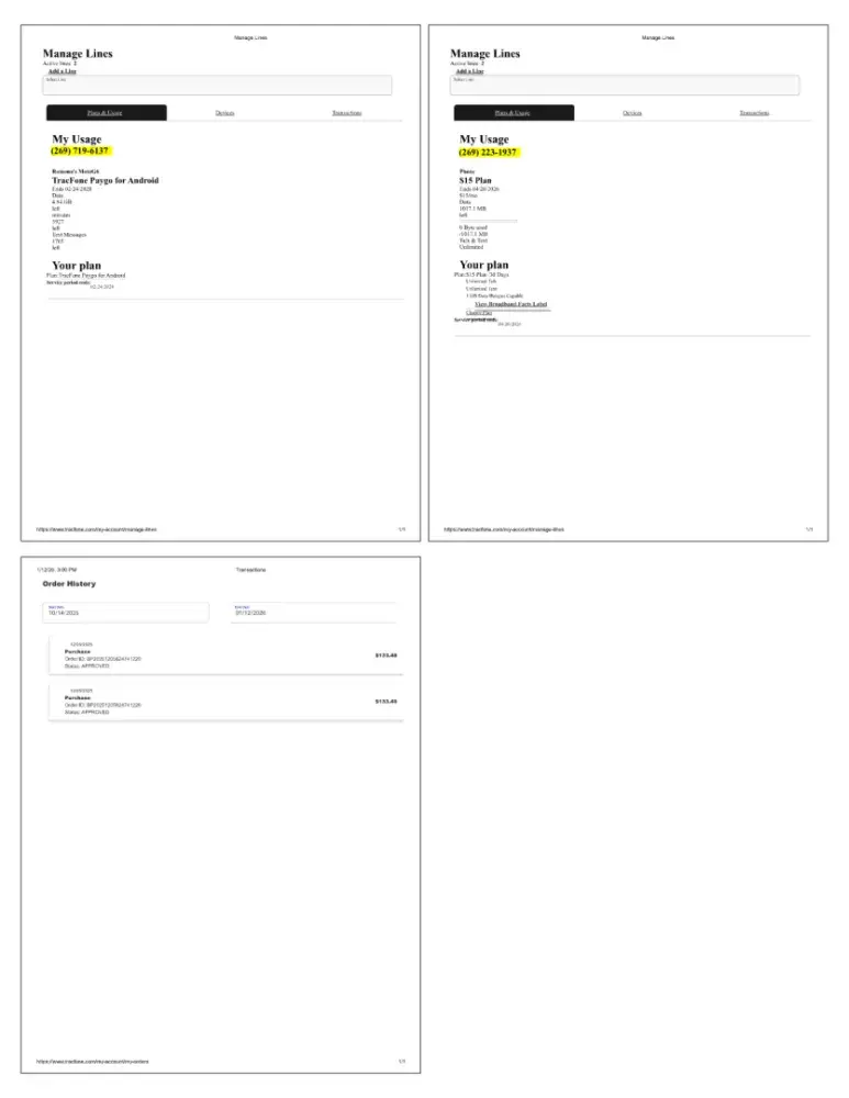 While trying to transfer number to new phone, all account information for two phones on my account was changed by TracFone customer service reps. Several .png files are attached as support for changes that were made, and need to be corrected. The file named "Documentation" explains all actions by date and what Plans, Usage and Data should be.