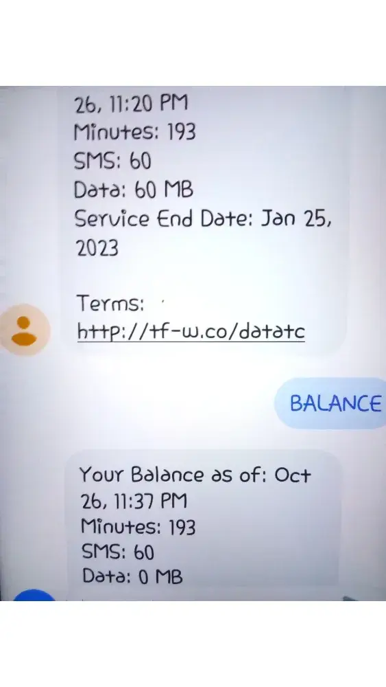 I want over 12.8 GB of data, over 6000 phone minutes, and over 2000 texts restored to my phone, or a refund in the amount of $289.64.