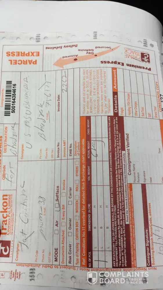Read full complaint11 Trackon Couriers Complaints