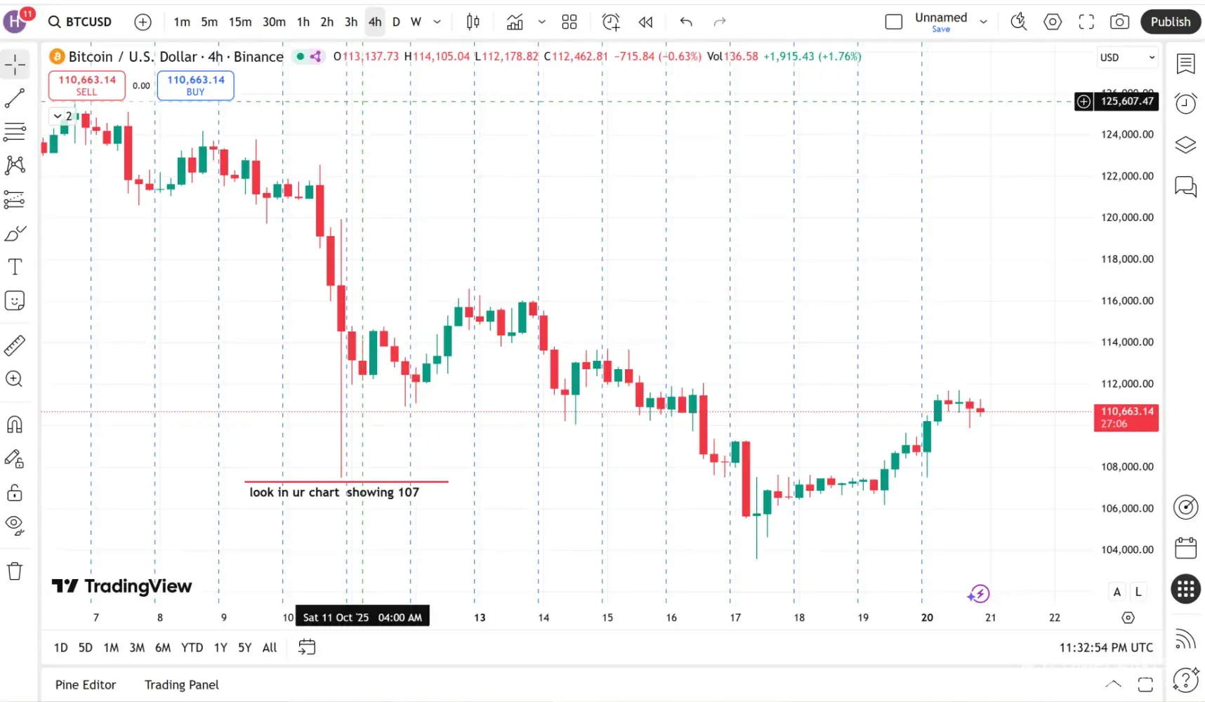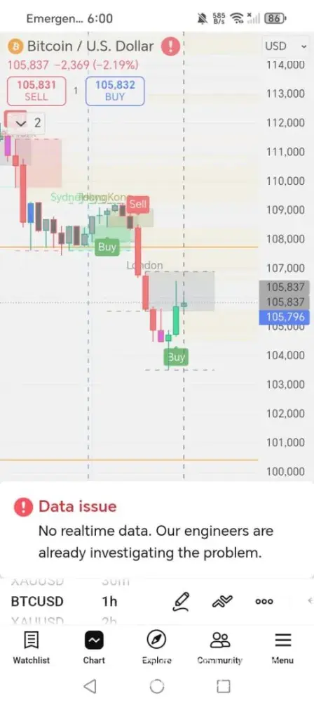 Trading View's BTCUSD chart has been displaying inaccurate price data since October 13. The actual market low was 102, but the chart shows 107 as the bottom, omitting the real dip. This misrepresentation can mislead traders and raises serious concerns about data integrity and trust. The issue persists across multiple devices and browsers, and has not been...