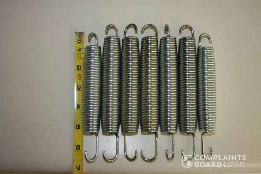 On 122410 I ordered replacement 7" springs for our trampoline. Once I opened the box, I noted that 2 of the springs were shorter as well as several of them appeared "loose" and worn. After measuring I determined that 2 of the springs were 6 1/2". I have tried contacting them for a week through the phone numbers listed on their website, on the invoice, through email, & finally even through a fax. As of today I have still heard no reply & since they are obviously going to be so unresponsive to me they have left me with no choice but to dispute the charge with my card company. I will spend more than the charge of the springs alone in attempting to dispute this charge but it does not matter. This company is a complete scam & unresponsive to customer concerns. I WARN everyone to steer clear of doing business with them.
