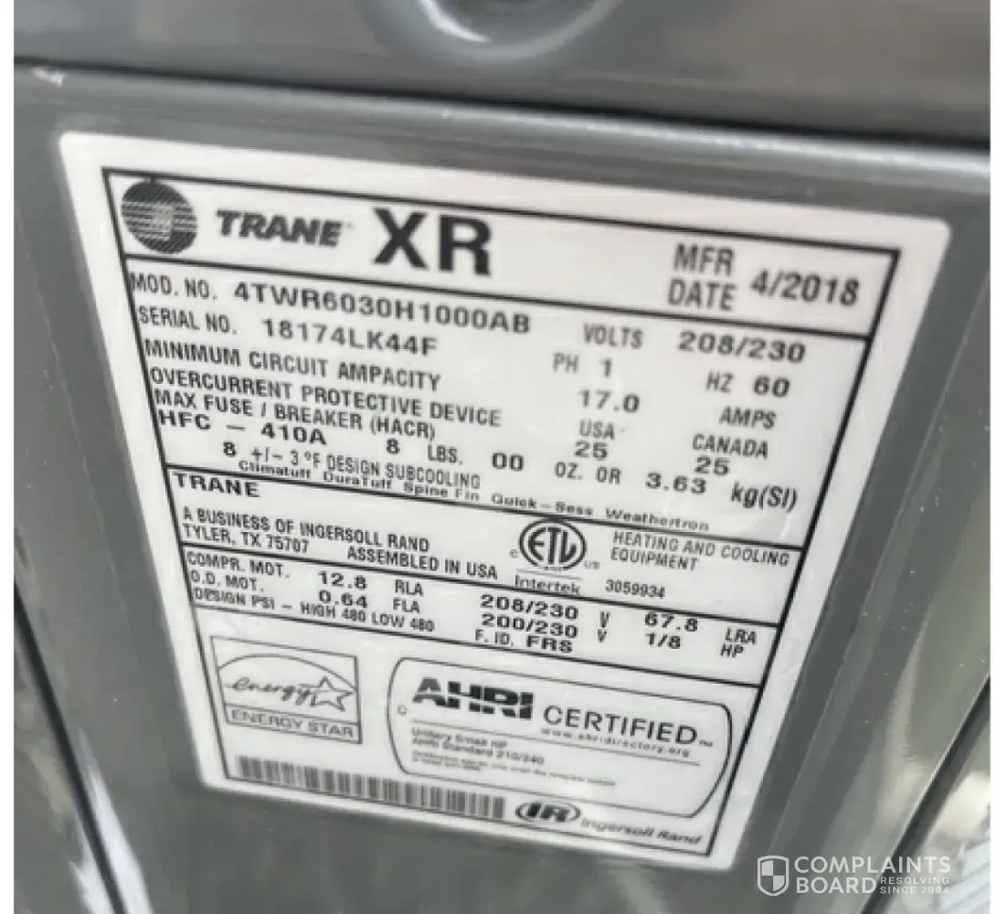 Read full complaint2 Trane Reviews
