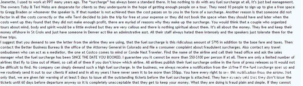 Lauri Wilmott, Executive Director of Gregg Bradens Press Office, is involved in a scandal that to quote him, uses a company called Power Places Tours, who have a track record in handling 'difficult situations'. Those difficult situations are handled by Gregg Braden condoning litigation fraud and people being ripped off in bad faith, and subjected to...