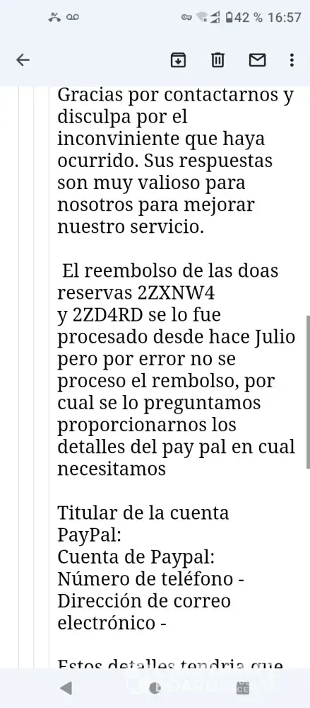 5 months waiting for my refund, today is the day that they do not return anything they do not answer me and when they do they say that in 15 days and I stayed the 15 days they tell me that my account is wrong how will it be wrong if . From there they charged 8 accounts 4 ppay number Pal I have provided and each time I wait 15 days 5 to locate them already generated double the expenses and I require my money and an indegnisacion Refund