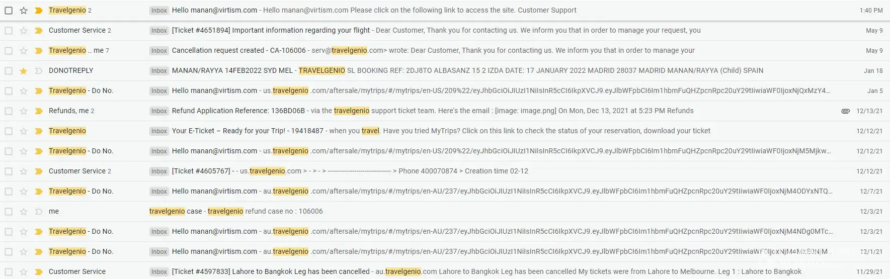 part of trip as been cancelled and I got an email from travelgenio to contact them. I tried in their website and when I wrote my email address it says that there's no reservation under my email address but they are send me emails.