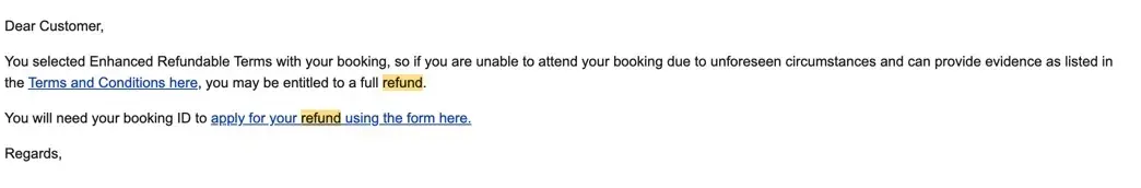 Desired outcome: Fully refund