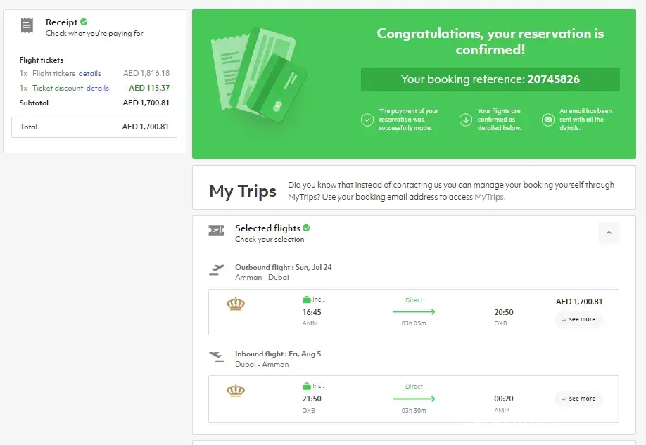 Booking reference number :[protected]