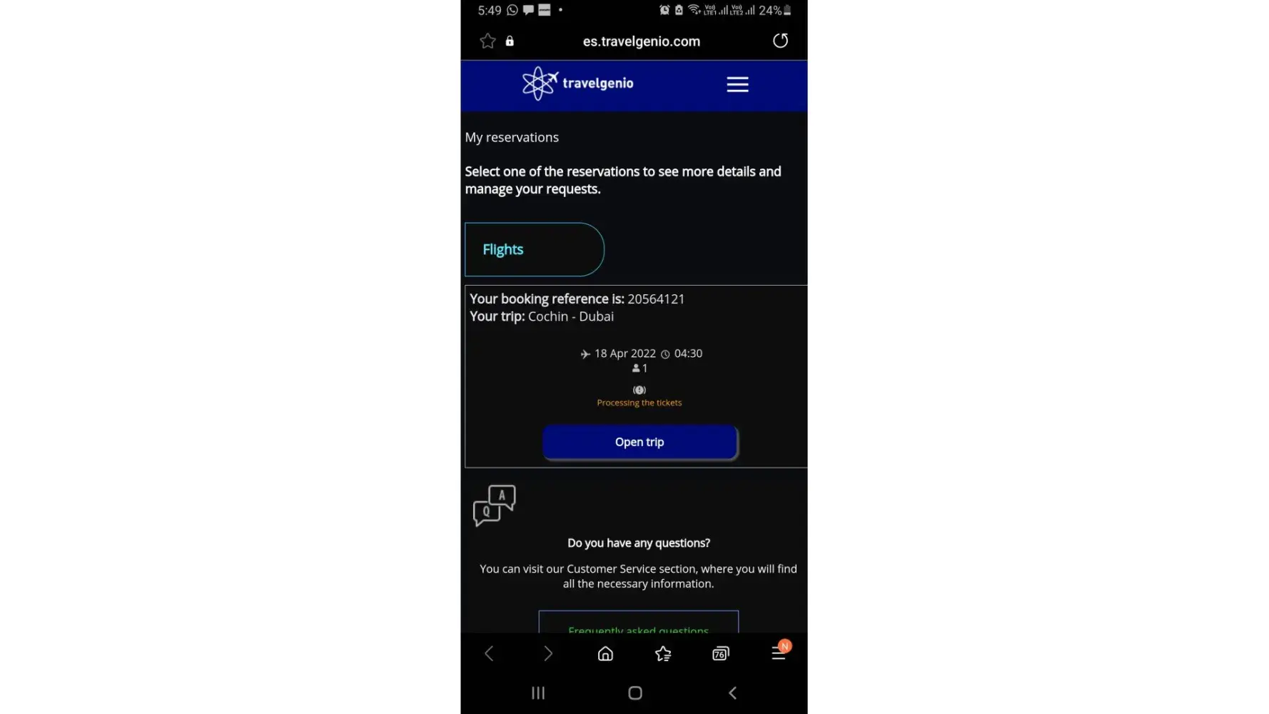 I requested travelgenio to refund my amount as there is no booking in my name anywhere. More than 48hrs completed I didt received my amount. If you are running a travel agency you need to have proper customer support as people have a lot of changes regarding luggage, cancellations etc.