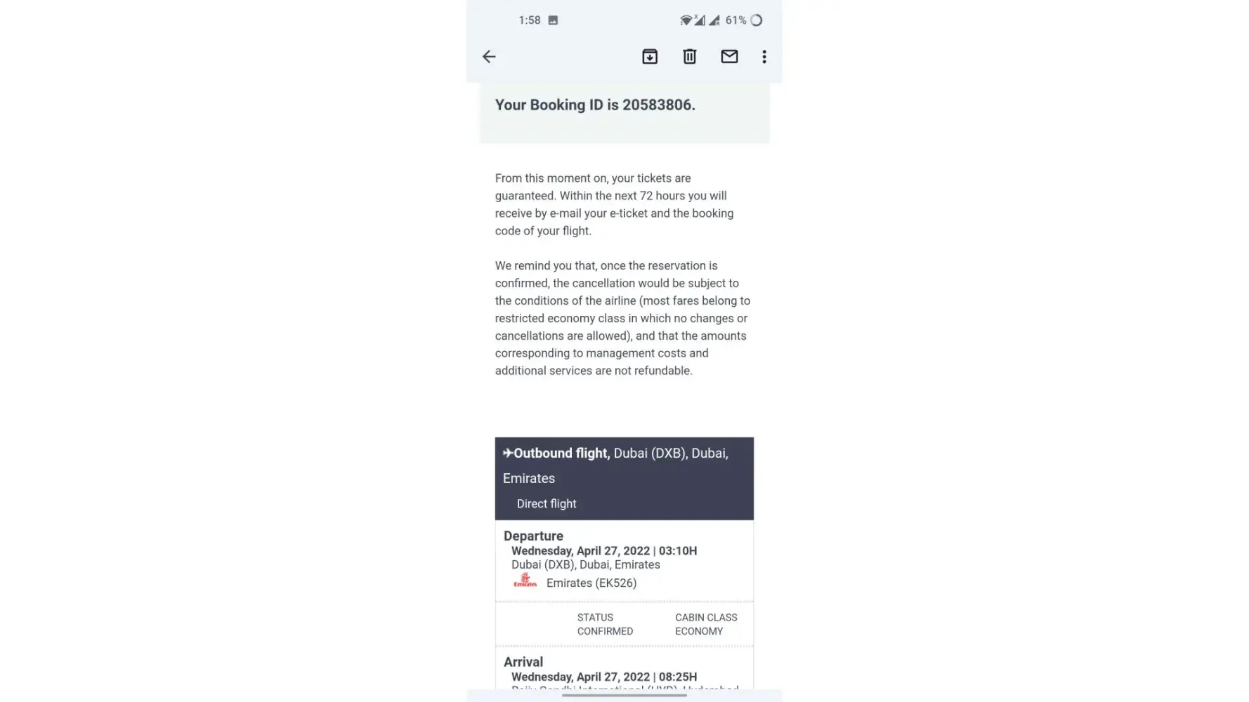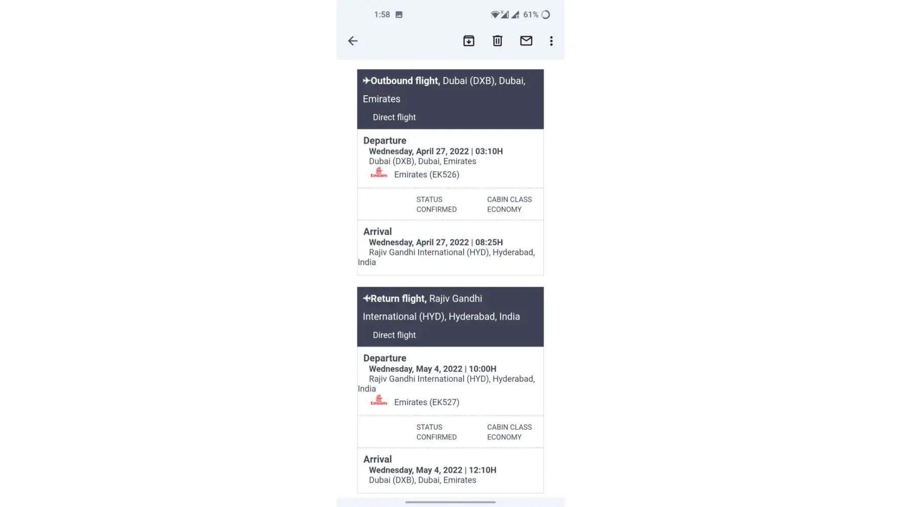 Im Mohammed mudaseer uddin, I booked my flight from Dubai to Hyderabad round trip. I booked this for the date of 27-apr-2022 and return on 04- may-2022