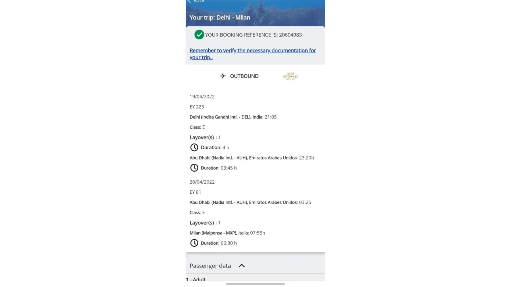 I have book two tickets yesterday (17th APR)from Delhi to Milan, Italy.