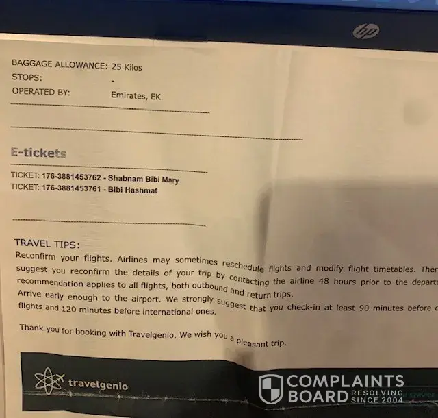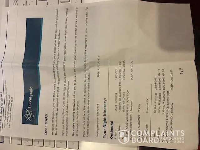 After booking I can see that there is no proper customer support no assistance not even any sort of support. After I saw reviews it was totally horrible that this site is scam and dont refund people money. I contacted to Emirates and they said that there is no booking in my name on 27. Again I contacted bank, bank said that the amount is on hold from travelgenio. So basically without booking tickets they confirmed me Emirates flight. As soon as I got to know this is scam I cancelled my flight within 12 hrs.