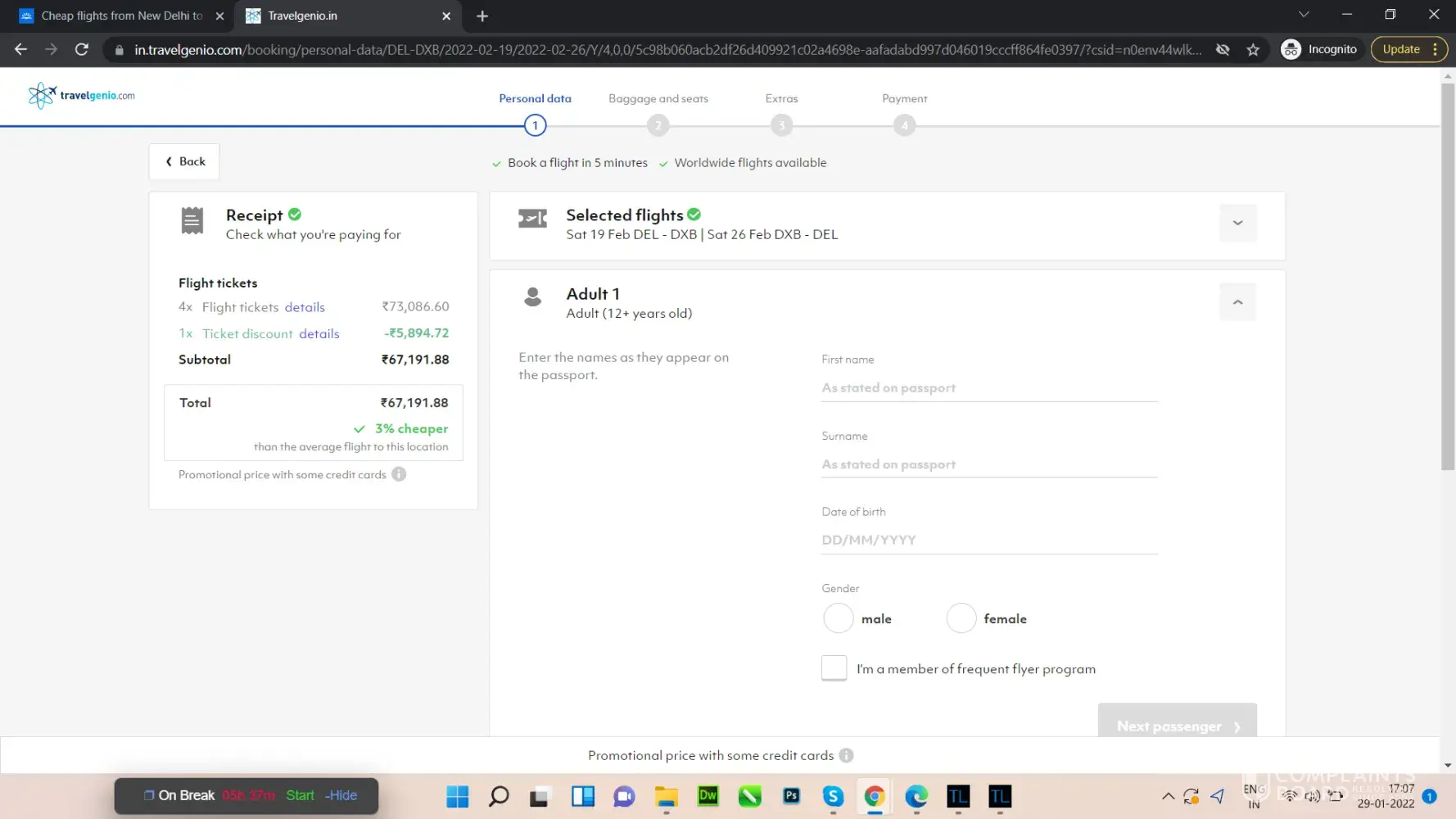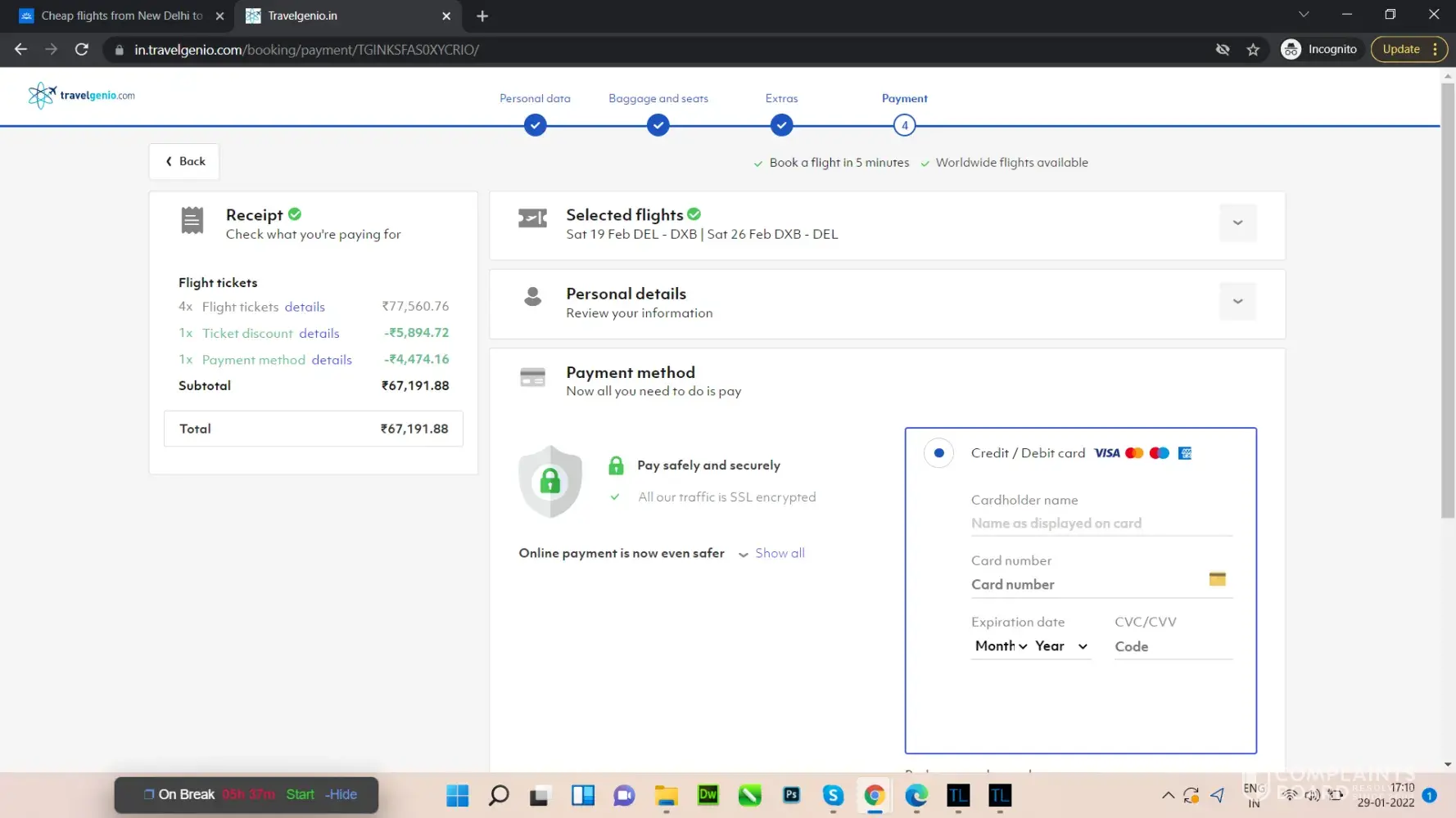 I purchased a flight ticket in October 2021, through the Travelgenio site and completed payment.