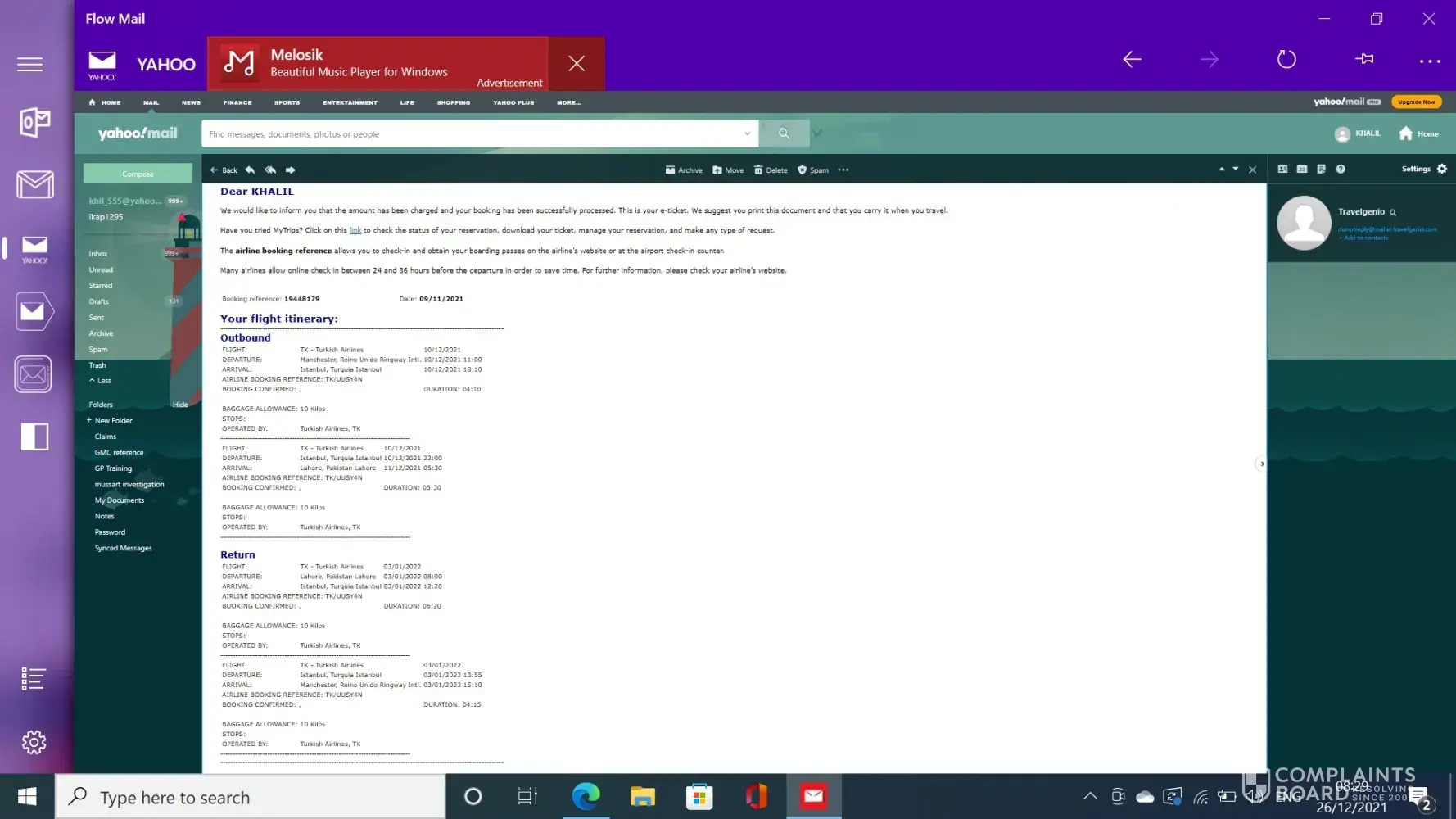 I booked my and my family (5 travelers) Return flights through Travelgenio on 9th Nov. 2021 from Manchester (UK) to Lahore (Pakistan) on Turkish airline.