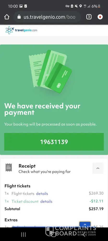 However, next day I went online to check the flight and it wasn't there, I called Lufthansa and they said the flight was cancelled by travelgenio.