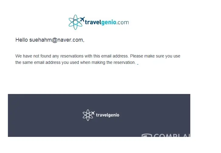 I then sent an email to Travelgenio (customer.[protected]@travelgenio.com), but they replied that no account exists under the email [protected]@naver.com.
