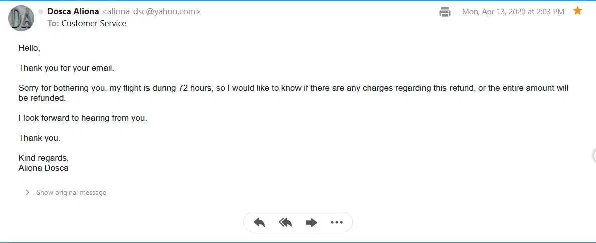 The airline has cancelled my going flight and when I wanted to refund my return ticket they refused to do any meaningful action even with the "Enhanced Refundable Term" that I purchased with the booking.