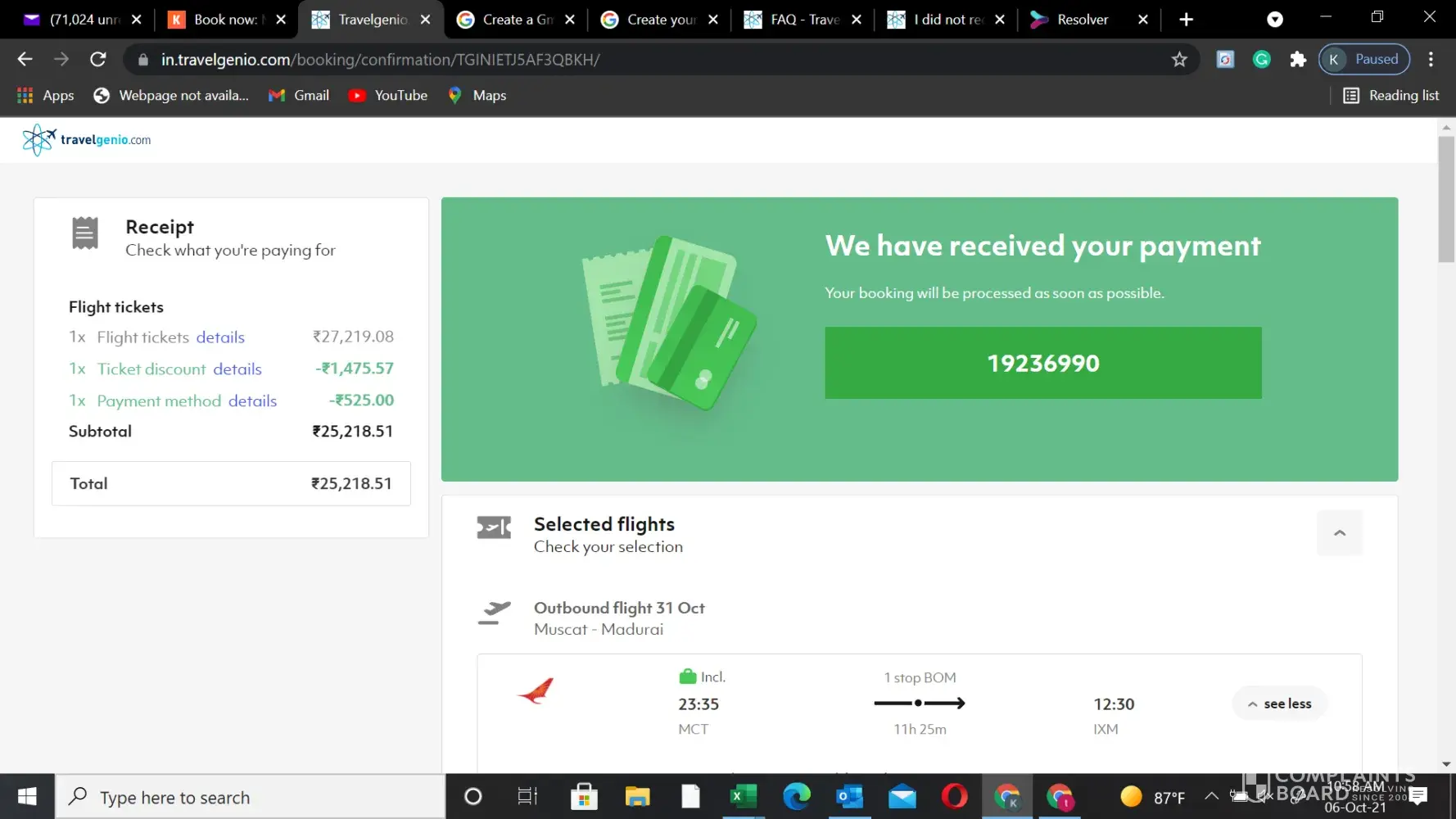 I booked a ticket through Travelgenio website on 6th Oct 21.