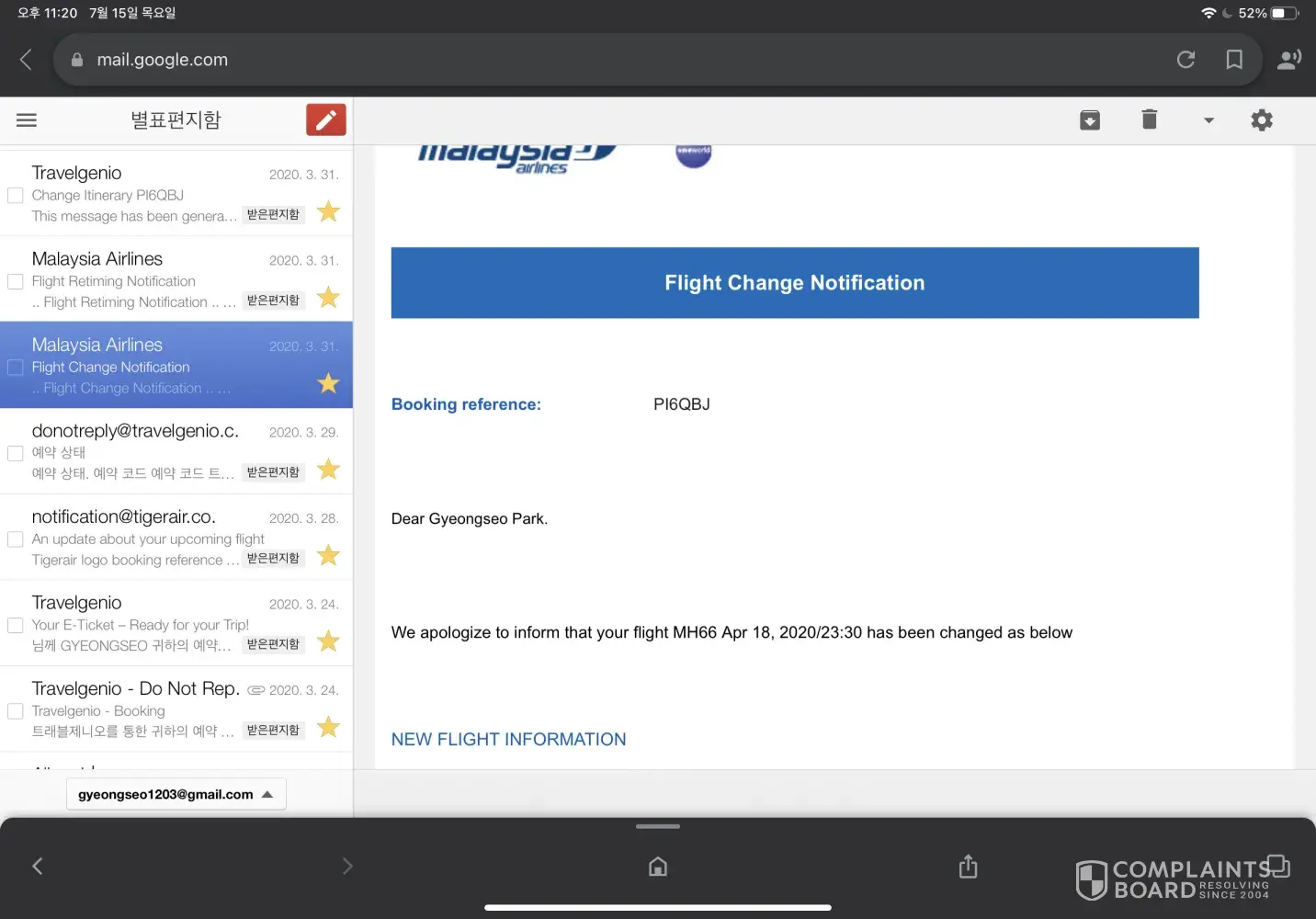 I don't know what to attach because I received so many emails due to cancellation or change.