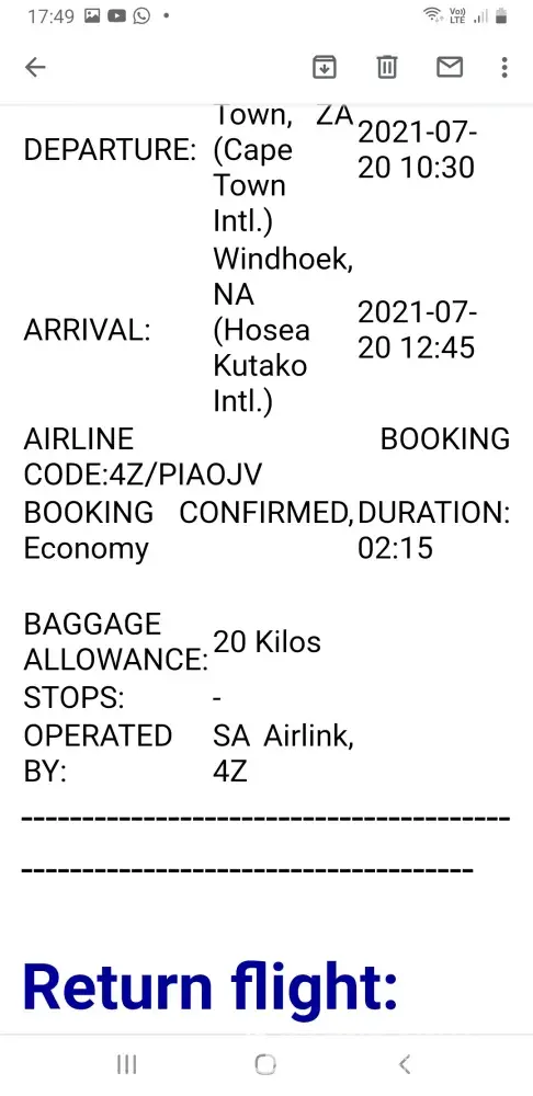 I booked a two way flight for two persons in February 2020, the return flight which was dated in 20 of may 2020 was cancelled duo to Covid-19.