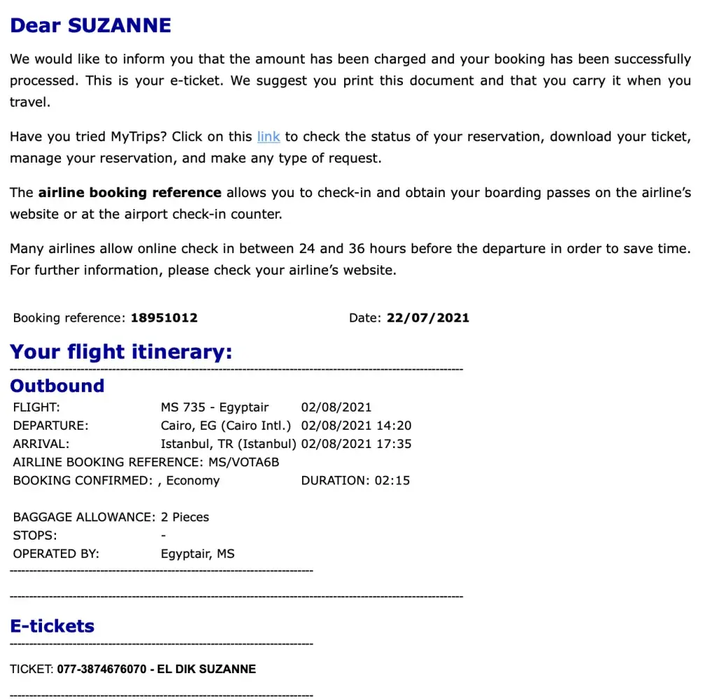 I am writing to you in regard to a booking that I have made through travel2be.co.uk on the afternoon of 21st of July. It wasn't even a booking, I tried to book my flight Cairo - Istanbul - Cairo. Their website told me that the payment was declined and took me back to the main page. No emails were sent, nothing was communicated nor confirmed, so I went to another website and booked my ticket. At around 3 am the following day, I found an email confirming my initial booking!