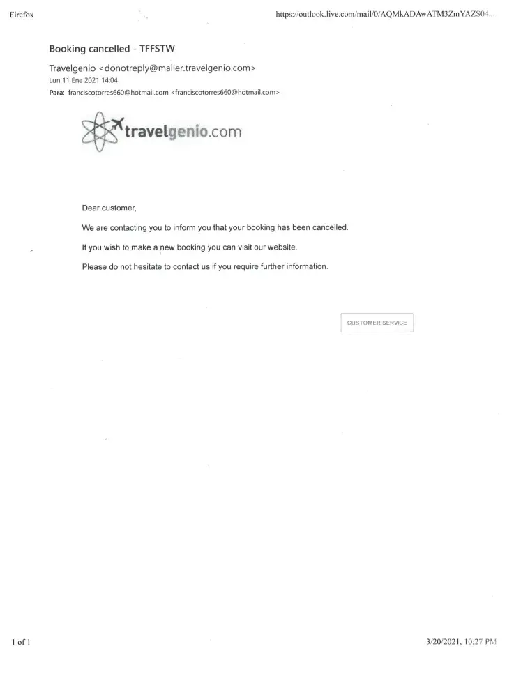 Travelgenio Booking flight ticket canceled without no notice nor reimbursement