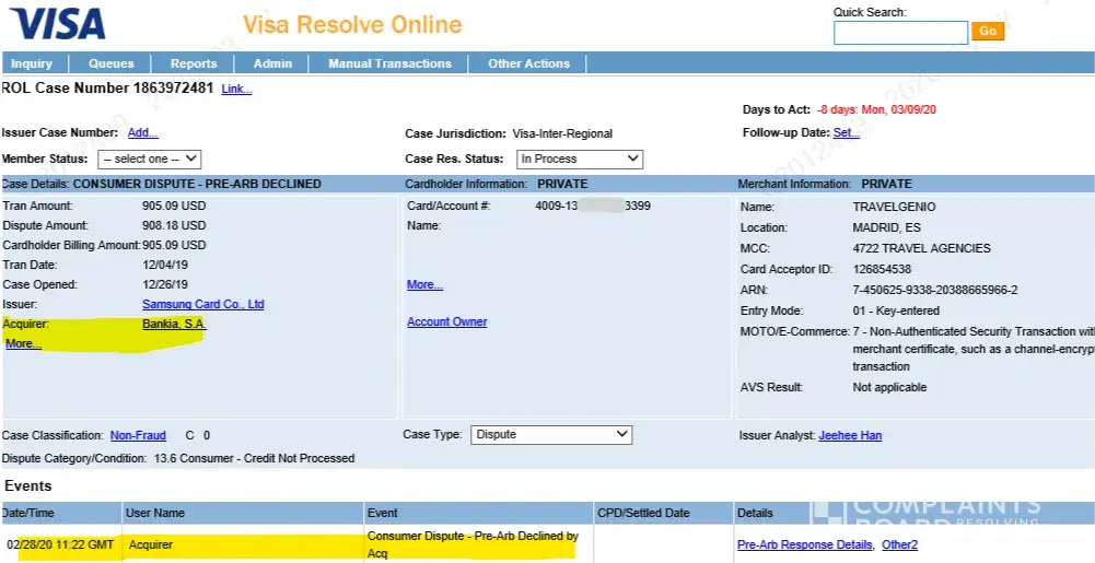In order to proceed we kindly ask you to provide an official statement signed and stamped by your bank informing about the closure of this matter to process the reimbursement into the same payment method used during the booking process.