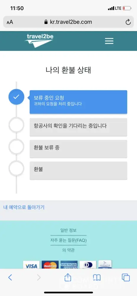 Travel2be를 통해 예약했습니다. 9ì›” 30ì¼ì— ì¶œêµë‚ ì´ì—ˆì§€ë§Œ ì½”ë¡œë‚˜ë•Œë¬¸ì— ìœ„í—˜í•˜ë‹¤ê³ íŒë‹¨ë˜ì–´ ë…ì¼ ì§€ì‚¬ë¡œ ì „í™”í•´ì„œ 6ì›” 25ì¼ì— 환불 ìš”ì² ì—°ë½ì„ ë“œë ¤ì„œ 취소 했지만 ê³„ì† ì§„í–‰ìƒí™©ì„ 확ì¸í•´ë´ë„ 60ì¼ì´ 지난 지금 ì•„ì§ë„ 환불 처리중ì´ë¼ê³ ë§Œ ëœ¨ê³ ë”ì´ìƒ ì§„í–‰ì´ ë˜ì§€ ì•Šê³ ìžˆìŠµë‹ˆë‹¤. ê·¸ë¦¬ê³ ì—°ë½ì„ 시ë„했으나 ì—°ë½ ì¡°ì°¨ ë˜ì§€ ì•Šê³ ìžˆìŠµë‹ˆë‹¤. í™˜ë¶ˆì´ ì•ˆë˜ëŠ” ê±´ 아닌지 너무 불안해서 ê³„ì† ì—°ë½ë„ ì•ˆë°›ê³ ì—°ë½ì´ ë‹¿ì„ ê³³ì´ ì—†ì–´ ì´ê³³ì— ê¸€ì„ ë‚¨ê¹ë‹ˆë‹¤. ë¹ ë¥¸ 환불 처리 ë¶€íƒë“œë¦½ë‹ˆë‹¤. ì´ ê¸€ 보시면 ë¹ ë¥¸ 조치 ë¶€íƒë“œë¦¬ê² 습니다.