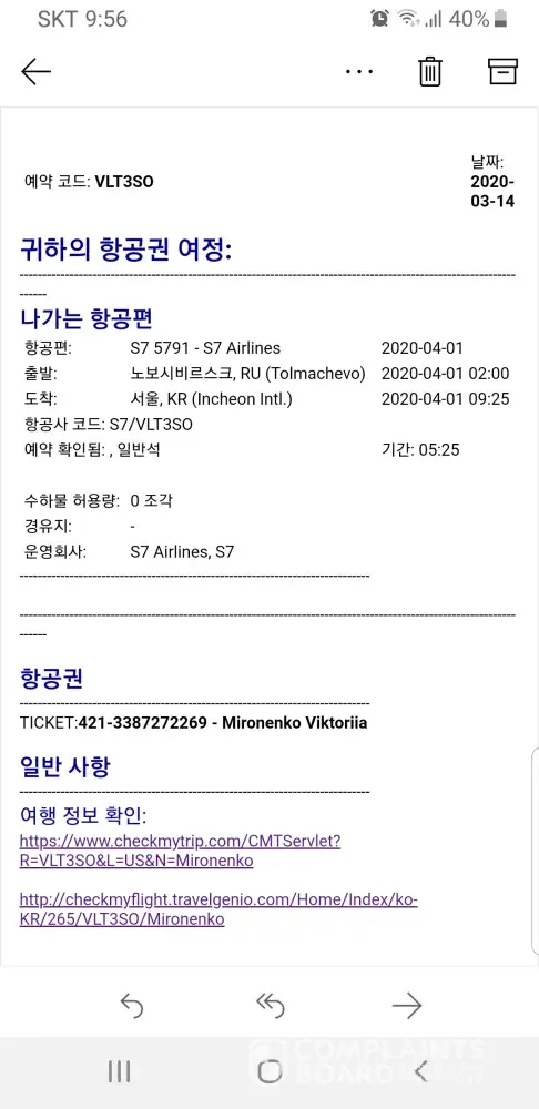- Ticket No.: [protected] (Mr. Yoon Hyun Chul), [protected] (Mr. Nam Sangtae)