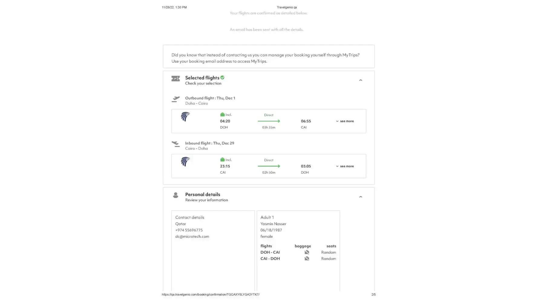 Desired outcome: Amend the contact email to get my E-Ticket or email my E-Ticket directly to my email ([protected]@microtech.com.qa)