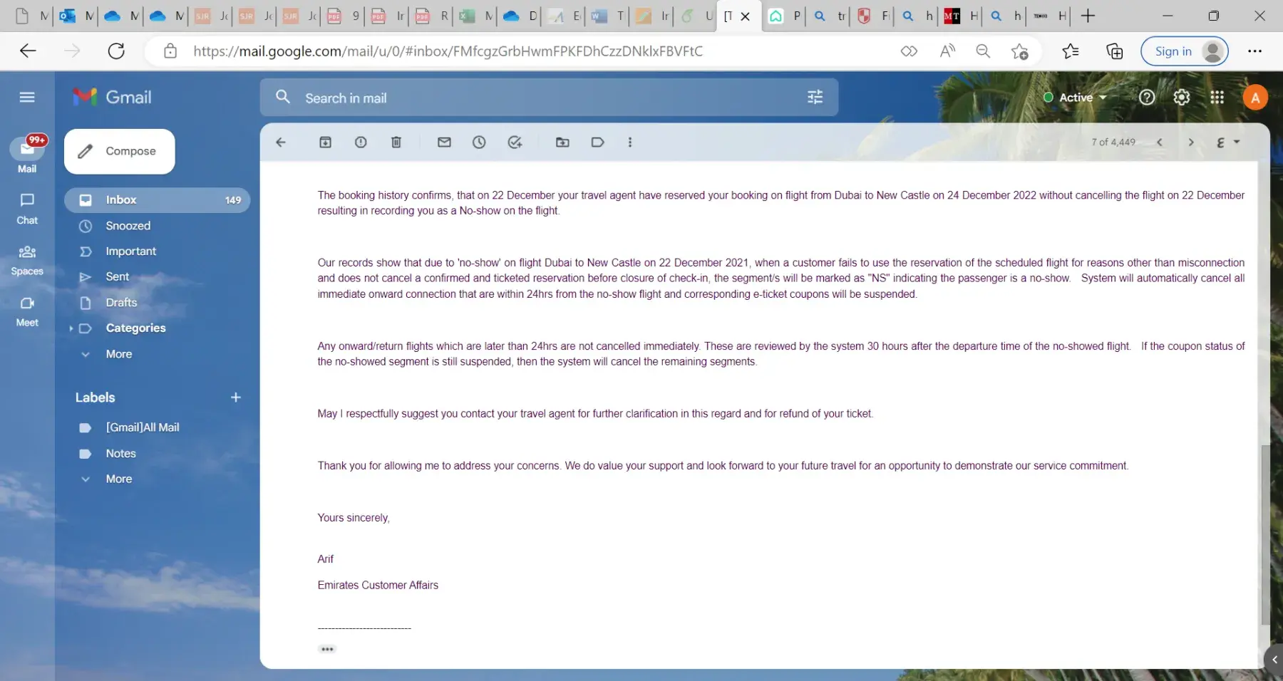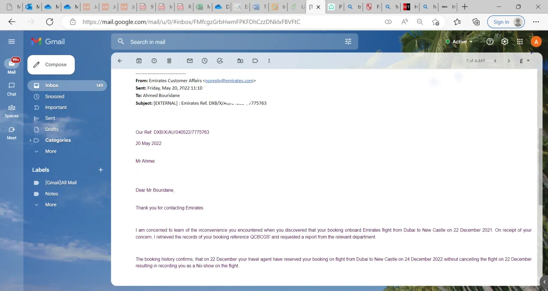 Reference to the attached, please be informed that I used wrong email address while making my booking ref# [protected] under the name of Yasmin Nasser (Birthday 18/06/1987).
