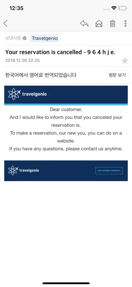 I have to hurry back to Korea today. I made a reservation on the Travelgenio website yesterday afternoon, but I checked the reservation status: cancellation several hours later. I've definitely confirmed that the reservation has been cancelled and I've I had to return home today, so I had to reschedule the same flight on another site and even check in. Because refund is not going on, I checked travelgenio site a little while ago and it seems that cancelled ticket issuance is going on suddenly, so I contact you urgently. I ask for a quick refund.