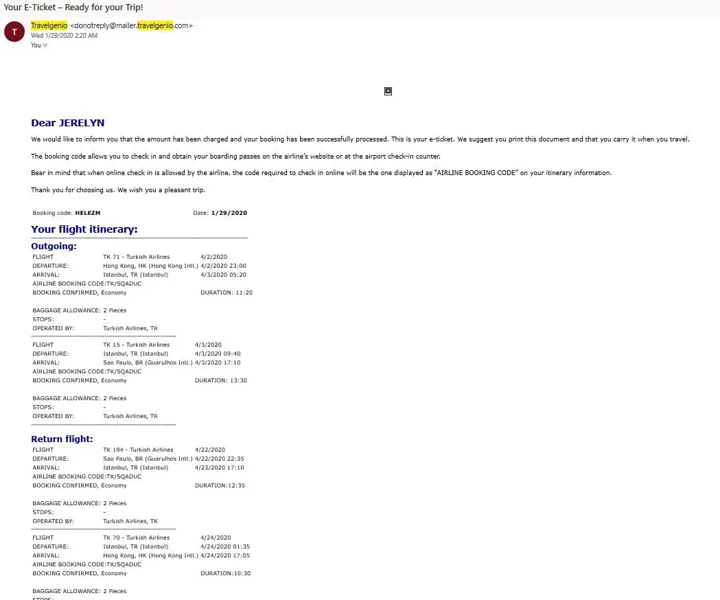 But because of the epidemic in China a lot of countries ban the travelling to China, Hongkong etc. I contacted the Turkish airlines and said the ticket has already been voided. I asked for the refund they told me to deal with the travel agency I already send dozens of email with travelgenio they are not responding how it has been voided, or if I will get a refund, or rebook they are ignoring all my emails and its been weeks now. Please Help