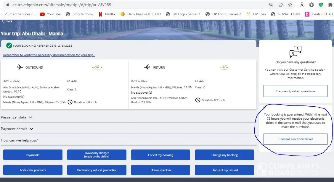 I booked a return flight from Abu Dhabi to Manila and back on Friday 30th September 2022.