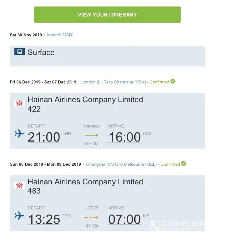 I booked onto a two-leg flight from London to Melbourne via Changsha for December and received an email from Hainan Airlines saying the second leg had been cancelled and that I'd need to contact Travelgenio to reschedule it, except the only problem is every time I call I'm told that I'll be on hold for 3 minutes 21 seconds and then after this time has passed it simply hangs up! I've tried three different contact numbers, all with the same result, and also emailed over three weeks ago to no avail. As it stands, I'm not sure if I can even get as far as Changsha as nobody has issues me with a new booking confirmation. What a colossal waste of £400+.