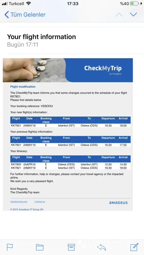 I bought ticket from odessa to istanbul April 21