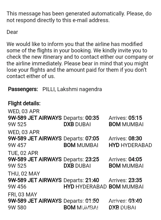 > > Please let me know what my flight schedule change is OR if this is a