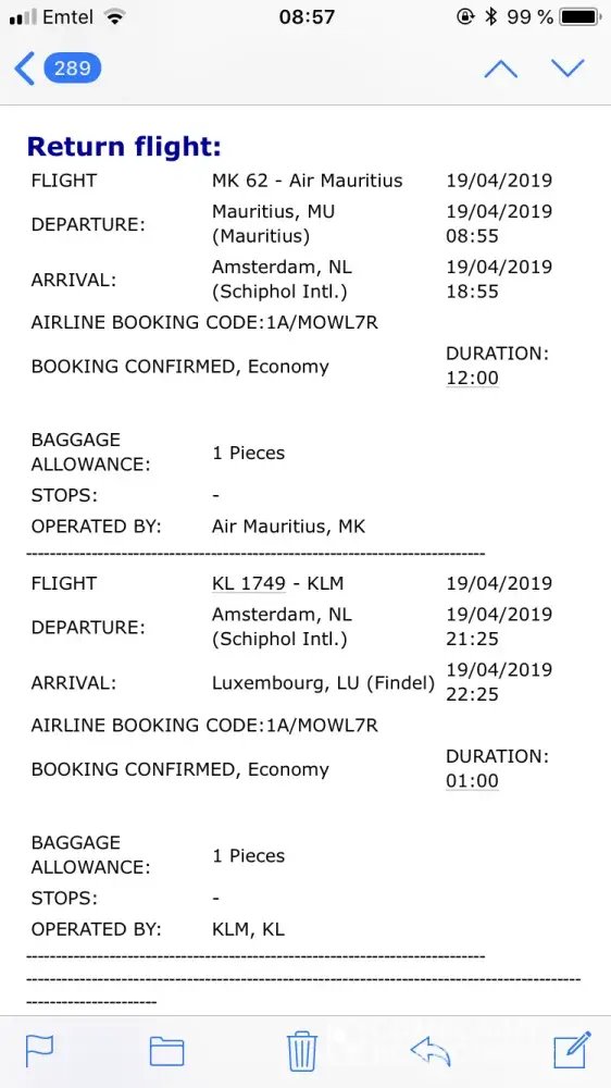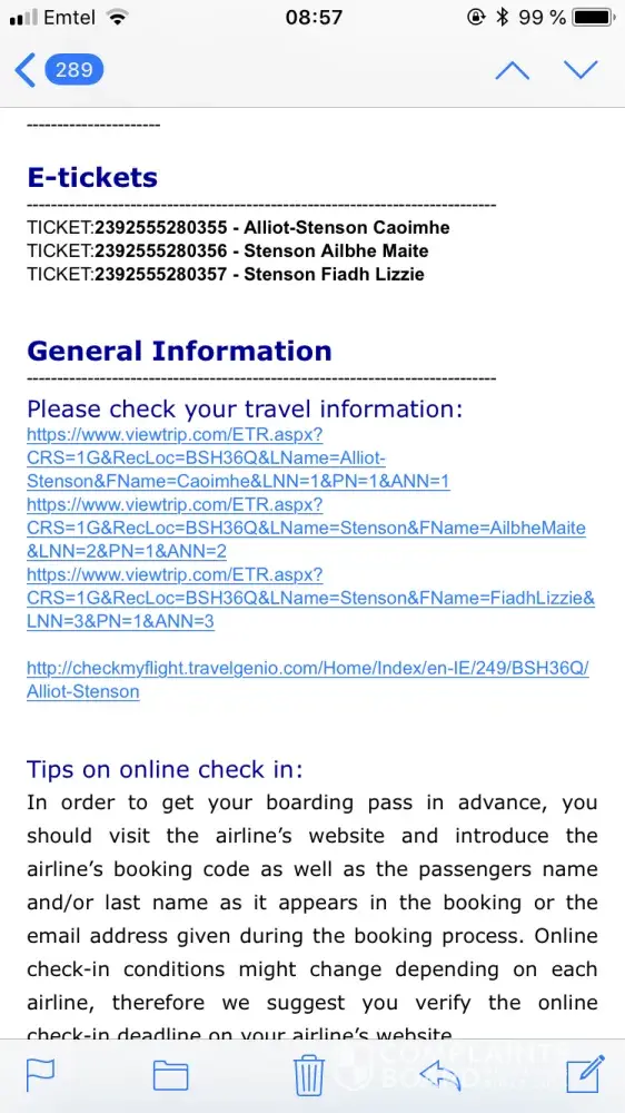 P.S: the booking was issued on 27/3/2019 the booking reference is 8M14C2