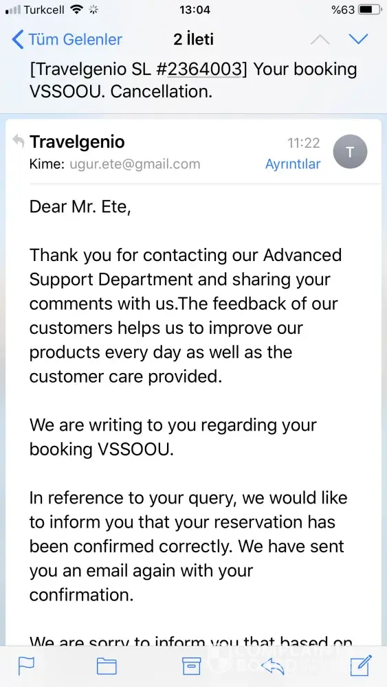 i did buy get tickets from your travel agent (travelgenio) from 24 to odessa istanbul - 24 may, istanbul odessa via internet in my debit card. I made a reservation and then I was informed that it was canceled. I can't confirm the ticket in any way. I sent an e-mail to the agent insisted, they send the same reservation codes and said check in 24 hours prior to the flight, but I cannot confirm the ticket I bought at the (atlasglobal) airlines. (Travelgenio) I requested a refund from the site, but no reply. I'm expecting you to help me with this kind of situation for the first time