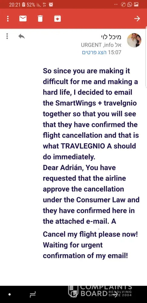 8 days ago I closed a flight with travlgnio now. Eight days after I ask to cancel... They said that the card is not canceled and refund will be possible only if the airline samet and wing will approve it.. And direct me to them.. To the airline smart wings.