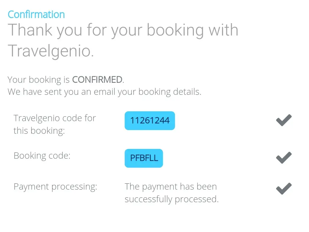 5. I called the customer service several times, and they told me to send an email to [protected]@travelgenio.com, with the payment proof. Or book and pay again !