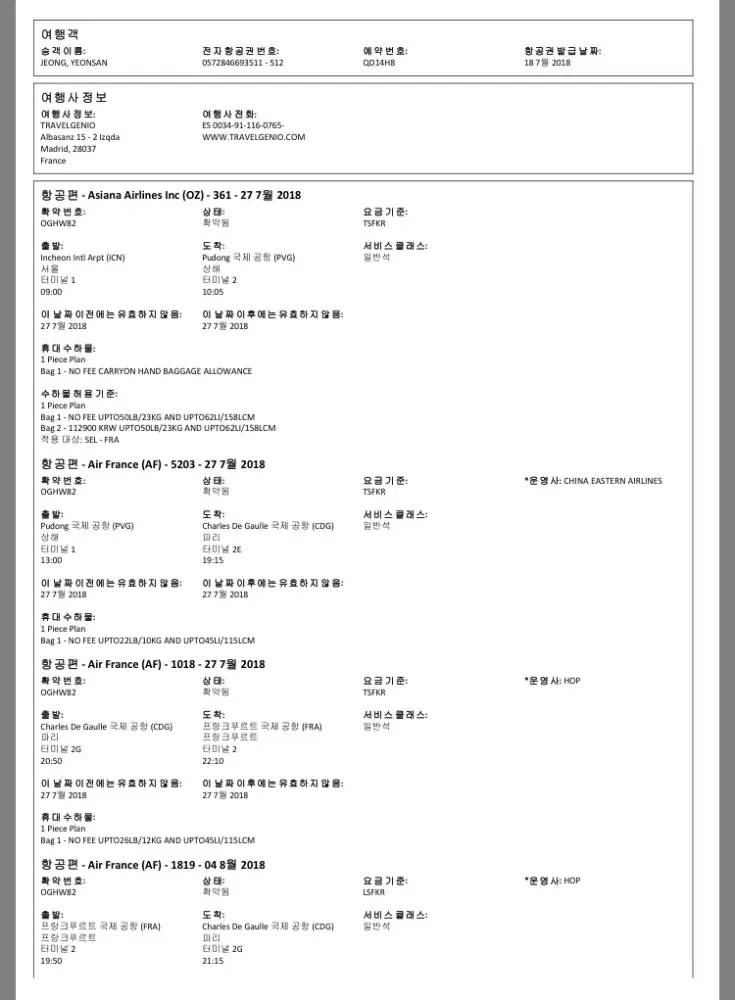 I recently purchased a flight ticket from OGG (Kahului, Maui, Hawaii) to PDX (Portland, Oregon) through Travelgenio online Platform. The reservation code is: HFKBRQ. I also purchased the Personalized Service Pack, which listed "extra and/or special luggage" as one of the many services. There was a white box to specify, where I typed just "1x 23 Kg Bag", and I was charged 20 euros immediately.