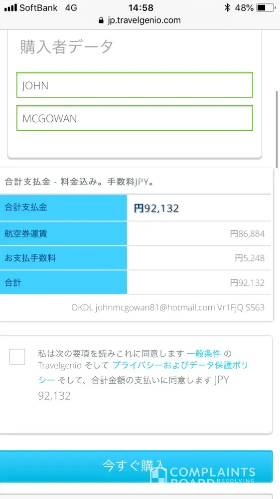So... I don't have a flight and I paid 92, 000 yen. I'd like my money back please