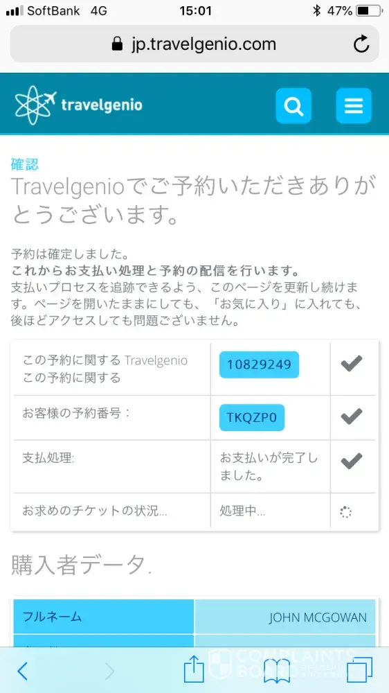 Then, called the airline, confirmed again, travelgenio hold my money.