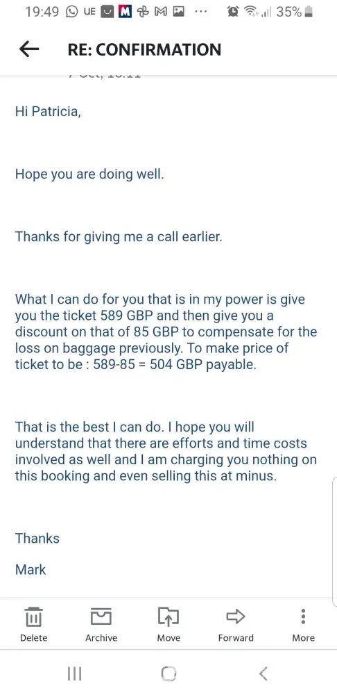 Our discussions revolved around the deposit, where I expressed my wish to have it refunded due to a change in my travel plans. To my dismay, Mr. Norman hastily proceeded to book the flight without my explicit agreement to do so, claiming that the deposit was non-refundable.