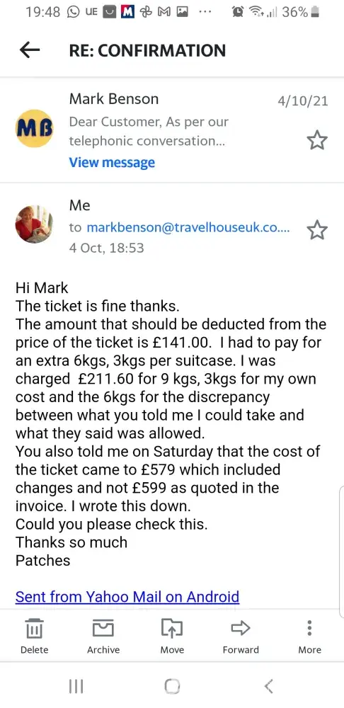 Since then I've telephoned, emailed and phoned Travel House UK and I still haven't heard anything from Daniel Woods the manager. I spoke to Mohamed who said that he will get Daniel to phone me back. I'm still waiting.
